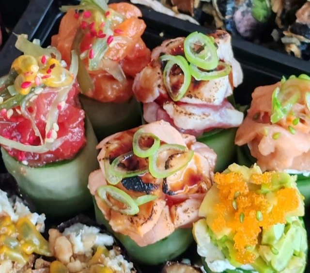 Plt 6 (24 pcs) california crevettes avocat, spring roll saumon avocat,neige avocat fromage,california tempura crevettes